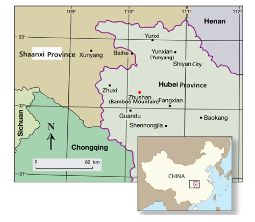 Attached please see the map of China and Shiyan City of Hubei Province. As all Hubei turquoise come from Shiyan City and most Hubei turquoise come from Zhushan(Bamboo Mountain). The famous turquoise mine Yungai or Yungaisi(AKA Cloud mountain or Cloud Temple) located in Yunxian(now name changed as Yunyang disctrict).
