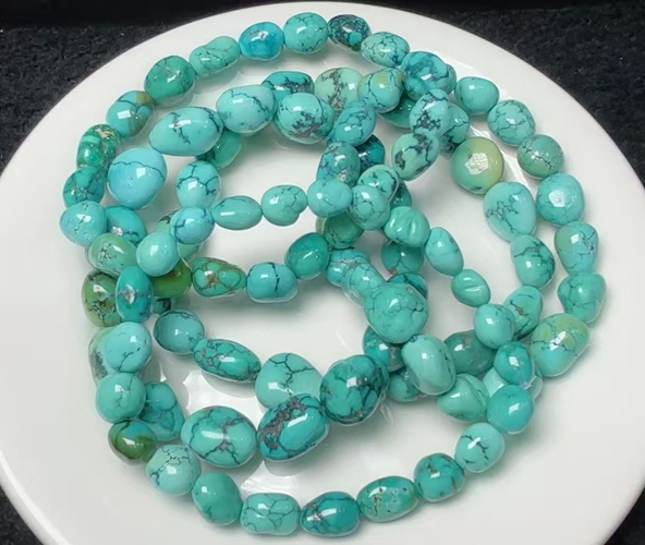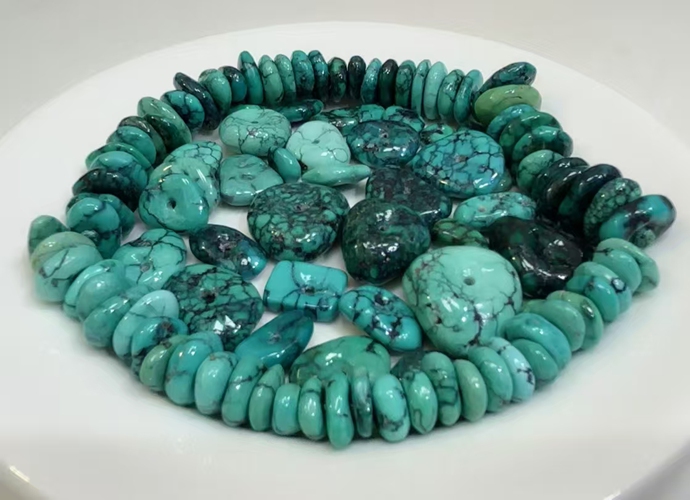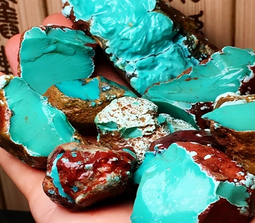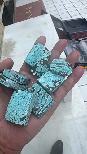 The QinGu 919 turquoise mine is located directly above 808 mine. Specialty in thin layer with white and red colored rough material.