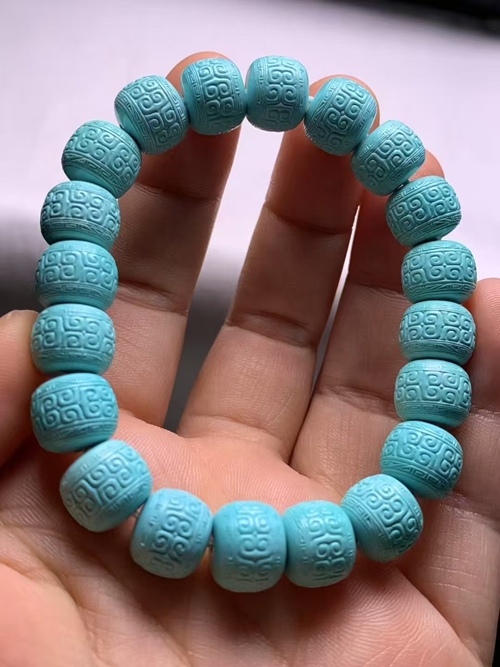 Turquoise produced in Yajiaoshan, commonly known as "Jelly Material, is delicate, uniform in color, and has less black line.